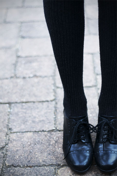 {Shoes: Bass -- Tights: H&M -- Dress: Thrifted -- Cardigan: Urban Outfitters -- Hat: Thrifted}