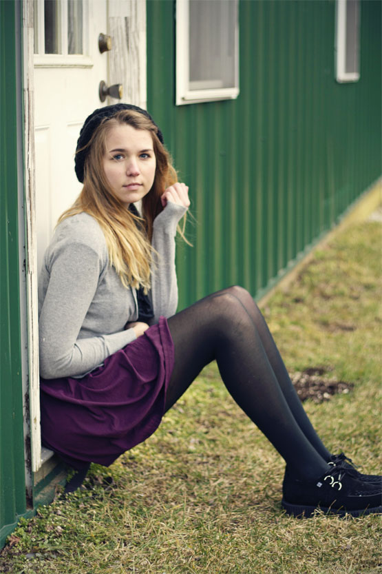 {Creepers: T.U.K. -- Dress: Modcloth -- Cardigan: Forever 21 -- Scarf: c/o Skip N' Whistle}